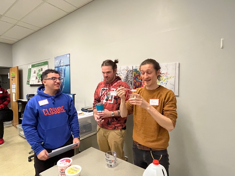 Scholar Benjamin wanted to connect with local High School students to help them understand that they can have an impact on this world. He chose to do a presentation about reverse spherificaiton (A process in which a calcium-rich food is dropped into a container filled with a sodium alginate solution. A gel-like shell slowly forms around the food as the calcium and sodium alginate react.) Students had the opportunity to conduct an experiment after the presentation to connect closer with what they learned about in the presentation.