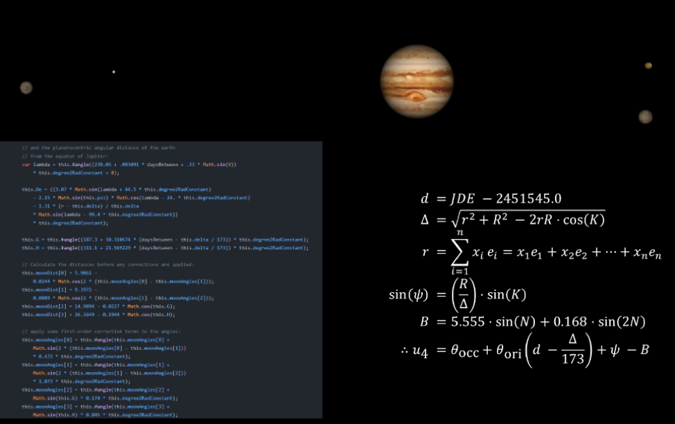 The Revolution of the Moons of Jupiter” is a retired software program used by HCC's Introduction to Astronomy course curriculum. For this project Scholar Christian worked on shifting the design of the retired software into a web-based application using JavaScript, combined with HTML and CSS, a WebGL-engine library ThreeJS, and the graphing tool Highcharts.